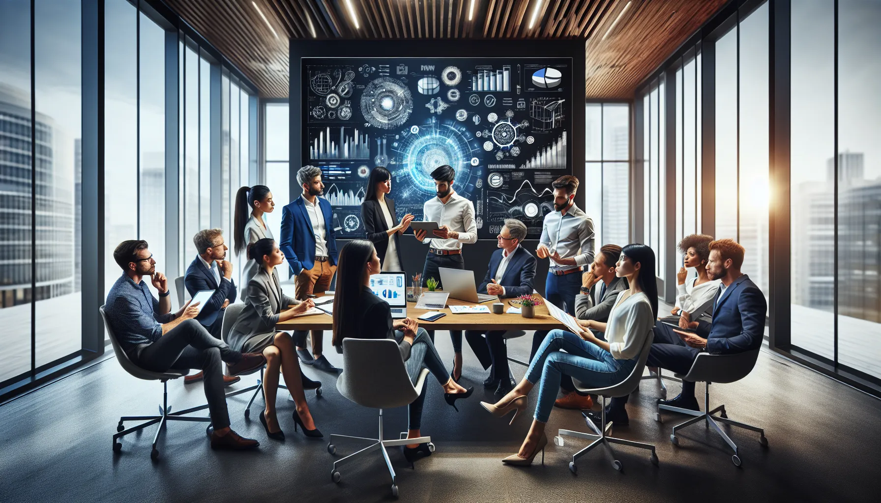 diverse professionals collaborating in a modern conference room.